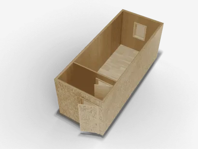 Деревянная бытовка размером 6 x 2,4 метра — отличное решение для временного или постоянного проживания. Внешняя отделка из ОСБ обеспечивает надежность и защиту от погодных условий. Внутри использование МДФ придает помещению стильный и современный вид, а также легкость в уходе. Пол выполнен из линолеума, что делает его практичным и удобным. Бытовка спроектирована с одной перегородкой, что позволяет эффективно использовать пространство для различных нужд.
